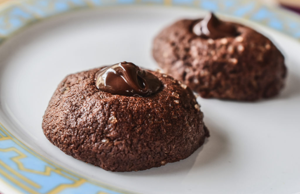 I pressed again in the holes with the bottom of the wooden spoon and while they were cooling I melted bain-Marie the hazelnut cream.