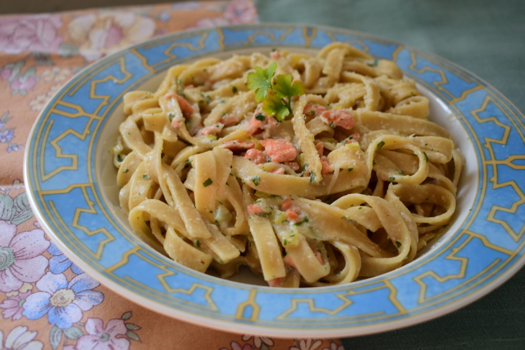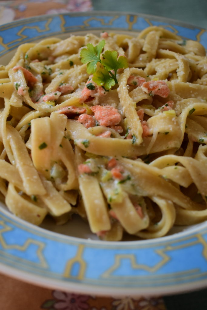 I added salmon, pepper and parsley, cooked for one minute more mixing well, turned off the fire and served immediately.